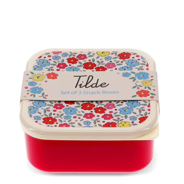 Perfect for lunch bags or days out, this pretty set of Tilde snack boxes has three different sizes, ideal for storing a range of snacks, from fruit and crackers, to cheese and small sandwiches. The nesting design makes for easy and compact storage when not in use.